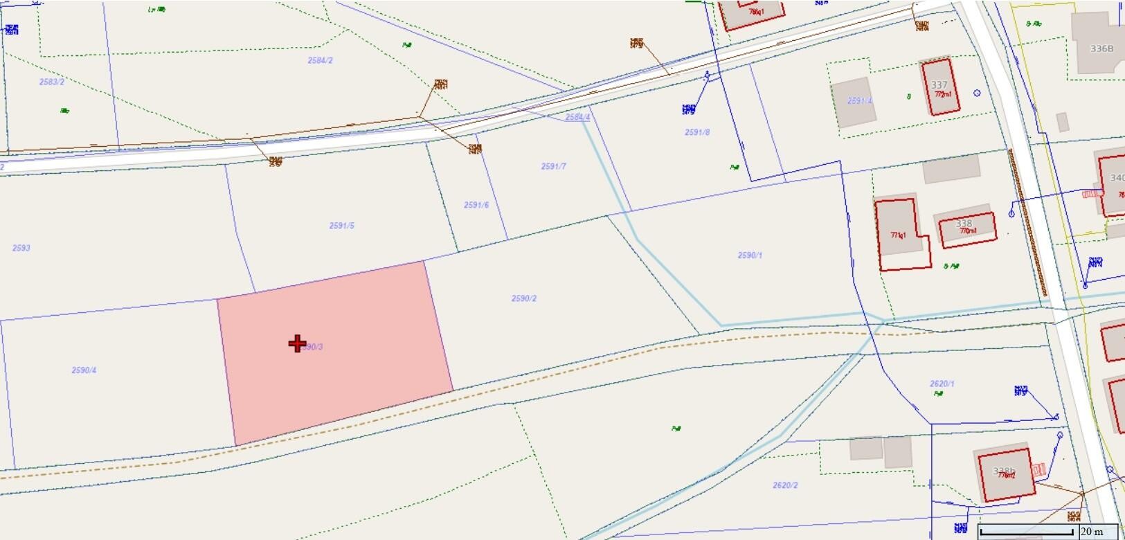 Działka wymaga usunięcia krzewów oraz niewielkich drzew.